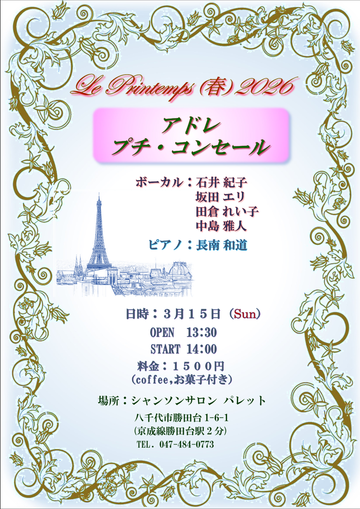 ☆2025. 3. 2(日) アドレ・プチコンセール(2025第1回)